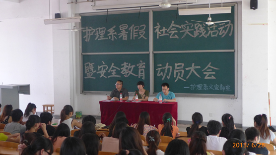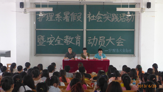 随着夏日温度的逐渐升高,又一波的暑假即将到来了。随之到来的还有各所院校最关注的话题,暑期安全。6月28日下午3点,我院护理系在图书馆106开展了暑假社会实践活动暨安全教育动员大会,出席此次大会的有秦秀红副主任、团支部书记肖雷老师、导员马焕亮老师以及全体护理系同学。