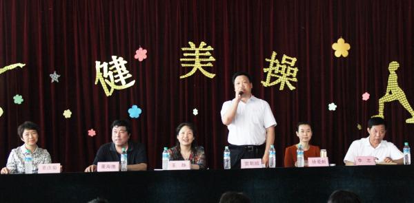 王静书记致开幕词、窦新顺院长宣布健美操大赛开幕