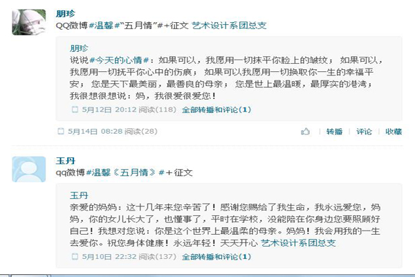 时至五月,身边似乎总绕不开温情的主旋律,为引导广大青年学生学会关心母亲、学会感恩,5月8日--5月14日艺术设计系开展了“温馨五月情”微作文活动。