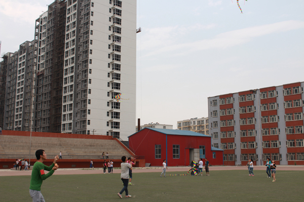 各个班级的参赛队秩序井然,团结奋进,表现出了顽强的意志、高尚的竞赛品质和极强的集体荣誉感。大家本着“友谊第一,比赛第二”的原则,乘着风势,放飞手中的风筝。天空的风筝造型各异,有:老鹰、蜈蚣、蝴蝶、小鸟 ,平添了许多乐趣。