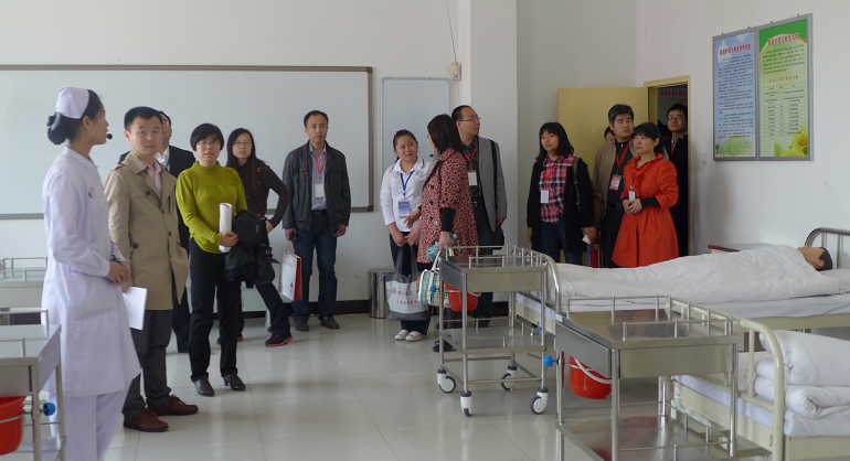 2013年4月28日,河北省第一届高职院校会计信息化技能大赛在我院隆重开幕。来自全省30所高校的领导和老师在大赛期间参观了护理实训中心。