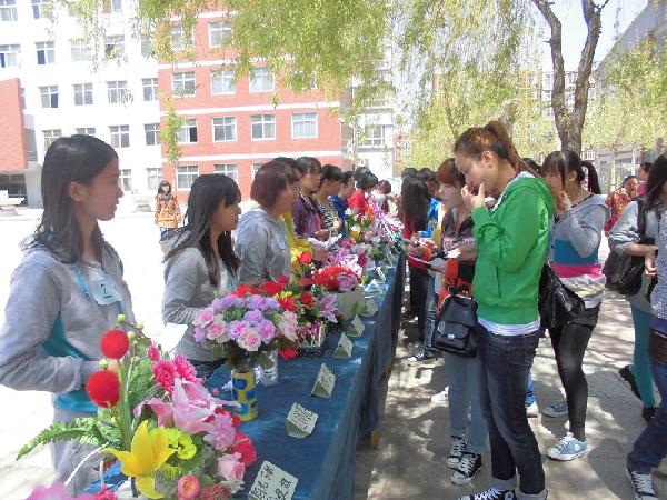 整个展览过程,学生热情地接待顾客的询问服务,详细地解答了作品的名称、花材、花语和内涵等富有花艺的内容,展示了园艺专业的教学水平。