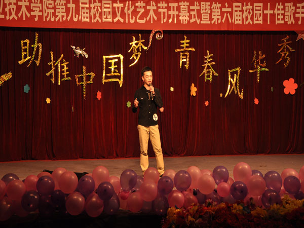 活动现象气氛非常活跃,同学们对自己喜欢的歌曲和歌手给予热烈的掌声和呐喊声,给选手献花、拥抱,用不同的方式表达着对歌手的喜爱,充分显现出了大学生的青春与活动。同时选手们也用自己悠扬的歌声、优雅的台风及得体的着装表达着自己的真挚情感和对歌曲的理解。经过2个小时的比赛,我系6名同学从20名选手中脱颖而出,顺利进入“十佳歌手”他们是:2012级装潢1班吴凡、2012级环境艺术设计级专业李婧,2012级表演艺术专业刘思桐、袁伟,2011级表演艺术专业蔡景飞,2011级装潢艺术设计1班刘乐、张卜天。