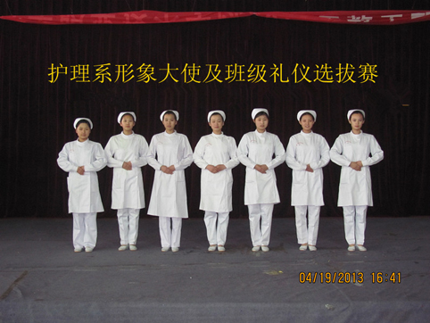 护士是平凡的天使,她们从事着琐碎而繁重的工作,却拥有一颗善良而高贵的心。为了塑造护士形象,展示白衣天使的青春风采,激励广大学生增强职业道德和文明礼仪方面的知识及修养。女院护理系于4月19日下午两点在食堂四楼组织开展了护士形象活动。参加此次活动的有团支部书记肖雷老师、12级护理系导员马焕亮老师、团学会主席及12级各班参赛者。