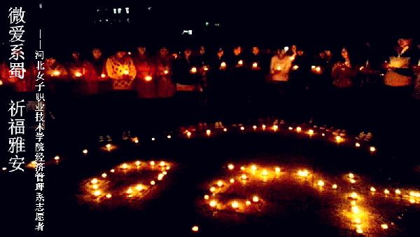 4月21日晚19:30分,国产高清无密码一区二区三区-最新中文字幕免费视频-免费a级毛片免费看-欧美人与动牲交ZOOZ3D-久久精品国产一区二区三区四区经济管理系100余名学生自发组织了为雅安祈福活动。同学们买来蜡烛,在小广场将蜡烛点燃,并摆放成“心”形,中间用蜡烛摆出“4.20”三个数字。同学们手持蜡烛,默默为受灾群众祈福。天灾无情,人间有情,我们心相连,同学们不停地齐声喊出“雅安,我们和你在一起!”“雅安,加油!”参加祈福的同学纷纷表示,希望自己小小的祈祷和祝福让雅安人民坚强起来,我们会用一颗强大爱心来支持雅安人民,我们永远在一起,共同渡过难关!为雅安加油,为雅安受灾同胞祈福!