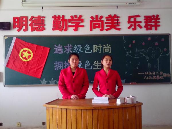 2012级会计电算化三班团支部及金融班团支部开展了以“追求绿色时尚 拥抱绿色生活”为主题的团日活动