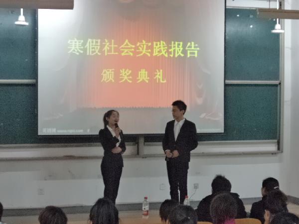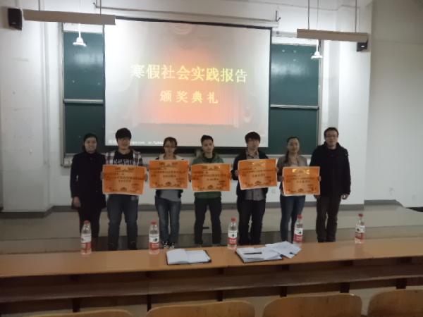 参加社会实践有利于使大学生更早的体验社会,接触社会,为以后走向社会奠定坚实的基础。今年寒假,我系社会实践工作陆续展开,并取得丰硕实践成果。2013年4月9日下午,为表彰在寒假社会实践工作中表现优异的个人,系团总支实践部在学院实训楼107教室组织举办了“2013年寒假社会实践报告颁奖典礼”。系就业指导老师李佳、辅导员李飞与2012级全体同学及2011级获奖同学参加了典礼。