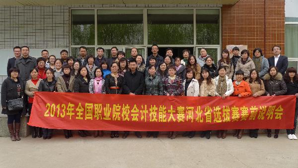 2013年3月29日,经过周密筹备的全国职业院校会计技能大赛河北省选拔赛赛前说明会在我院实训楼601会议室隆重召开,吹响了2013年度河北省会计技能大赛(高职组)的号角。学院窦新顺院长、院党委委员徐爱新主任、用友新道科技有限公司国赛命题组专家孙胜儒先生、用友新道科技有限公司河北分公司王力朋经理以及来自全省34所高职院校的56名带队教师参加了赛前说明会。会议由经济管理系主任李桂荣主持。