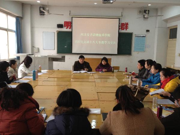 在党支部书记董海鹰同志的主持下,全体教职工认真学习中共中央总书记习近平同志在十八届中共中央政治局第一次集体学习时的讲话---《紧紧围绕坚持和发展中国特色社会主义 学习宣传贯彻党的十八大精神》和《中国共产党普通高等学校基层组织工作条例》。习近平总书记的讲话,立意高远,思想深刻,求真务实,符合党心民心,是推进中国特色社会主义事业发展的政治宣言和行动纲领。报告对教育工作的部署,符合我国教育发展实际,指导性和操作性很强,对教育的长远发展具有重要而深远的意义,为教育系统继续深入贯彻落实科学发展观,办好人民满意的教育指明了方向,使大家充分认识到十八大的重大现实意义和深远历史意义,决心要认真领会党的十八大精神,认真做好本职工作,不断提高自身素质,服务育人,务实创新。