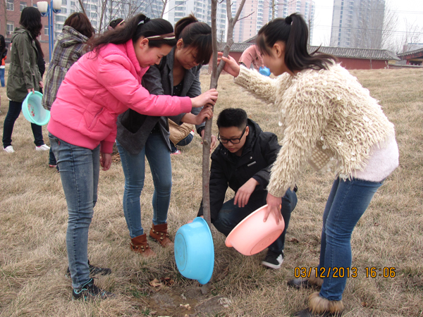 早春三月,草长莺飞间,冬天的寒意还未褪尽,春天带着绿色的气息向我们走来,春风吹绿了枝头上的嫩芽,吹绿了地上的小草,也吹动了女院同胞们的热情。植树节又迎来了崭新的一年,3月12日女院护理系12级各班班委及学生代表于下午三点五十带着工具在综合教学楼小广场集合,参加此次活动。