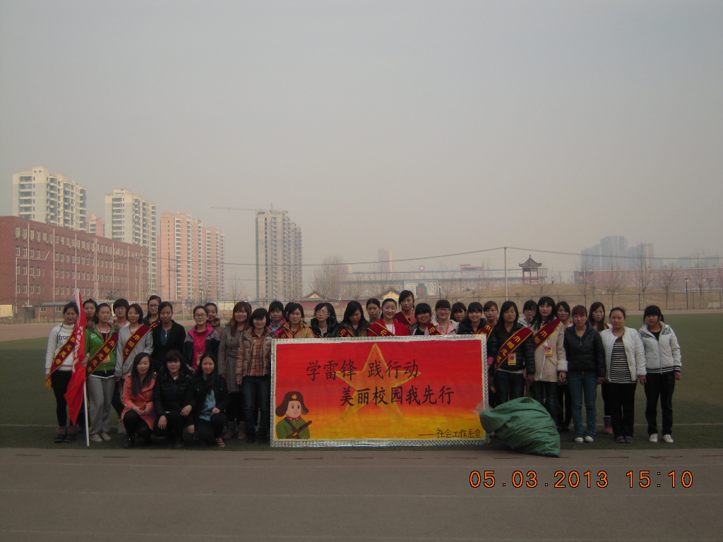 三月是一个春光明媚、生机勃勃的季节,三月更是一个讲文明、树新风,让雷锋精神吹遍校园每一个角落的季节。在这个季节,社会工作系以“学雷锋、践行动、美丽校园我先行” “美丽校园,有你有我”为主题举办了社会工作系巾帼志愿者学雷锋活动,社会工作系全体学生积极响应号召,从身边做起,从小事做起,在全校范围内开展了的校园垃圾清理和乱扔垃圾不文明行为监督纠察志愿者活动。