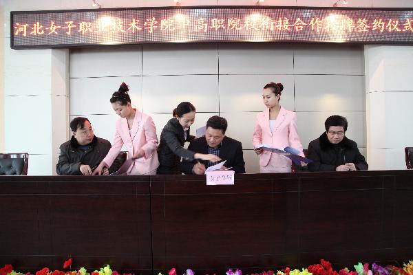 学院党委书记王静在签约仪式上致贺词,她首先向各位嘉宾介绍了学院近几年的发展经历和整体状况。她进一步指出,现代职业教育体系建设已经上升为国家战略,列入了国家专项规划。教育部副部长鲁昕同志在“第二期高职院校领导干部专题研修班”的讲话中强调:现代职业教育体系建设的切入点是中高职协调发展,探索中高职衔接已经成为推进我国高职教育科学发展的重要途径,成为我国创新人才培养模式、造就更多更好社会人才的重要平台。2012年11月召开的党的十八大为我国的社会经济发展指明了方向、目标和任务,胡锦涛总书记在报告中也指出,我国将全面进入建成小康社会和加快推进现代化进程的新的发展阶段,从建设到建成,一字之差却是质的飞跃。在这样背景下,选择正确的职业教育发展战略,使职业教育成为经济增长和社会稳定的有成效、有效率的推动力,具有十分重要的意义。因此,加强中等职业教育和高等职业教育的衔接,大力发展高等职业教育,不仅是新形势下发展职业教育事业的需要,也是当代社会经济发展对人才规格的必然要求。今后,我院要进一步贯彻落实《国家中长期教育改革和发展规划纲要(2010-2020年)》,深化教育教学改革,重点推进中高职培养目标、专业设置、课程体系与教材、教学资源、教学过程、招生制度、评价机制、教师培养、行业指导、集团化办学等十个方面的衔接,为中职院校的相关专业建设提供大力支援和帮助。