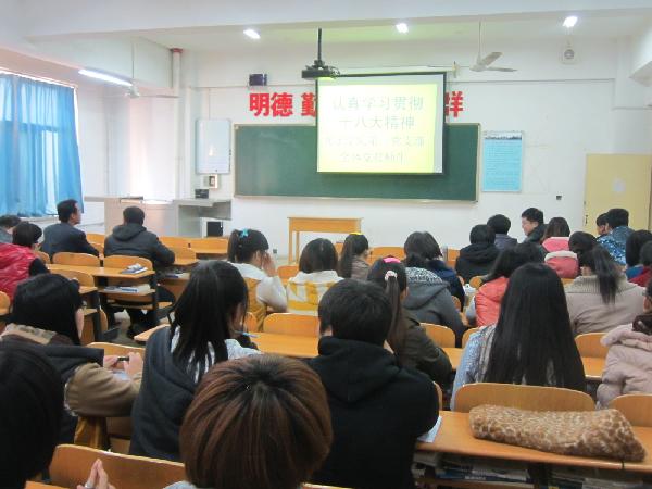 时值中国共产党第十八次全国代表大会在北京人民大会堂胜利召开之际,我院第三党支部响应院党委号召,于11月13日下午召开第三党支部全体教师及党员学生会议,学习贯彻党的十八大会议精神。