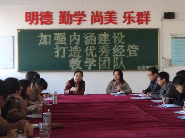 王静书记首先在会上作了重要讲话。她指出,经济管理系的教师队伍虽然年轻,但全系教职工的努力有目共睹,在教学水平的提高和学生教育培养等方面取得了一定的成绩。从上学期的会计文化节到本学期的“政校行企四方联动”财会专业建设与发展论坛,都是围绕专业建设和人才培养来开展的,大大提升了专业的社会影响力和知名度,对从行业企业需求出发、从学生就业业态出发来完善专业建设方案、优化人才培养目标具有明确的指导意义。王书记在肯定成绩的同时,也指出了我系目前工作中存在的问题和不足。她特别指出:今后要在内涵建设、团队建设上下功夫;在专业建设、课程建设、学术科研上下功夫。王书记还结合《女性成才》省级精品课团队的建设案例来激励大家,希望广大教师努力钻研业务、善于学习探究、讲究团队合作,在工作上要充满热情和干劲,要正确处理好工作与生活、事业与家庭的关系,将学院发展与个人成长密切结合起来,将教育教学工作和科学研究密切结合起来,争创一流的教学团队,为推动学院发展做出更大的贡献。