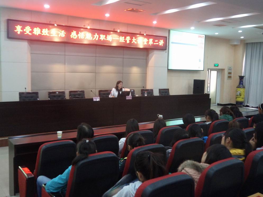 10月30日下午2:30,经济管理系在学院报告厅举行经管大讲堂开班第二讲。本期大讲堂由组织宣传部樊桂林教授主讲,主题为“享受雅致生活 感悟魅力职场”,我系2010、2011和2012级部分学生参加了本期大讲堂活动。