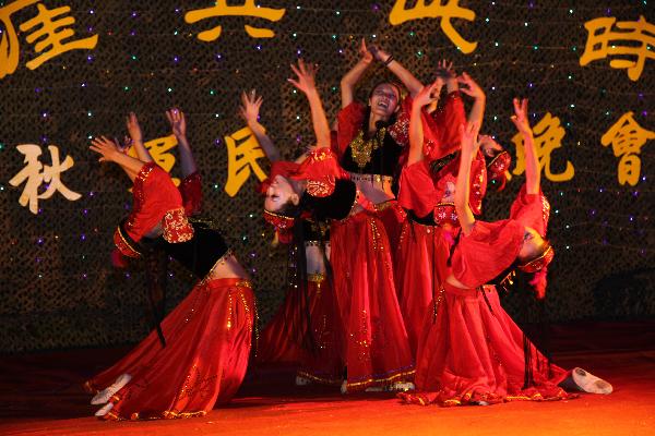 学院艺术团的22名师生在胡芳教授等艺术系专业教师的精心指导下,充分挖掘表演艺术的专业和人才优势,突出学院的办学特色,利用假期时间编排了新疆舞《花儿为什么这样红》、民族舞《剪纸姑娘》、女声独唱《龙船调》、歌伴舞《今夜无眠》、街舞《欢乐节拍》等五个精彩节目,为部队官兵送上了一场富有震撼力和艺术美感的文化盛宴。我院师生精彩纷呈的艺术表演将晚会一次又一次推向高潮,得到了部队首长和广大官兵的热烈欢迎和高度评价。
