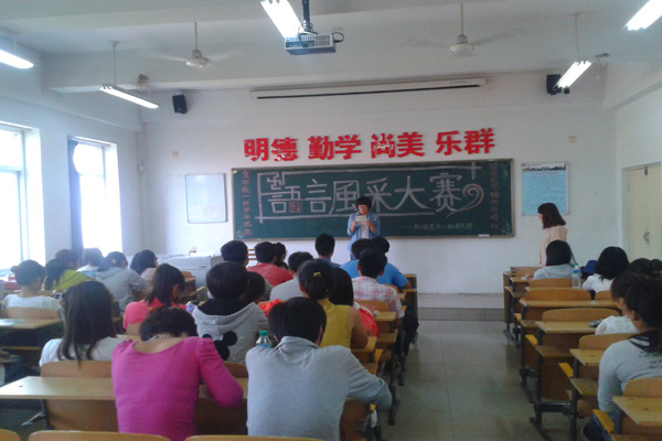9月18日,我系开展了以“展现语言风采,凸显青春活力”为主题的主题班会。各班积极筹备、紧扣主题,采用诗词朗诵比赛、绕口令比赛、中华美德故事大赛、成语接龙、文明用语书写比赛等不同的活动形式,开展了一系列丰富多彩的宣传活动。