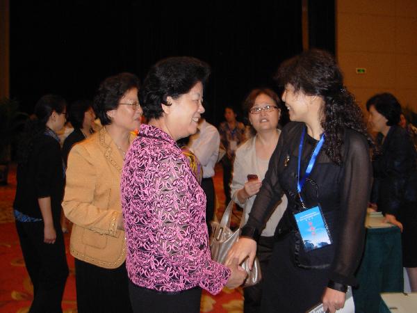 全国人大常委会副委员长、全国妇联主席陈至立(左二)与王静书记亲切交谈