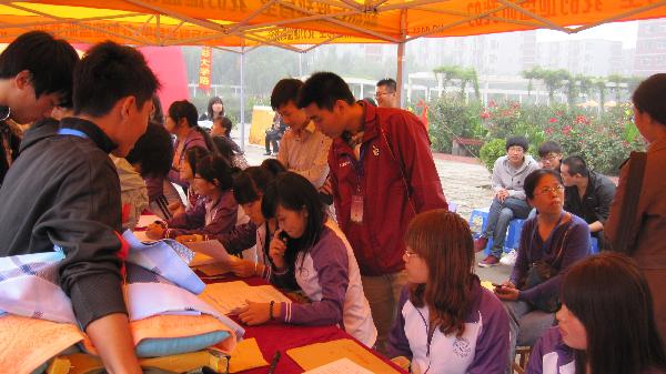 2012年9月6日,迎新生工作在我院小广场拉开帷幕,在各个部门的积极努力下,迎接新生工作井然有序的进行着,此次迎新的流程包括:带领新生在本系接待处登记并寄存行李、交纳学费、领取被褥、办理饭卡、澡卡直至入住公寓。除此之外,我系学生干部还带领新生熟悉校园环境,使他们大体了解学校的师资和设施,对我们学院以及应用技术系有一个更深的了解。