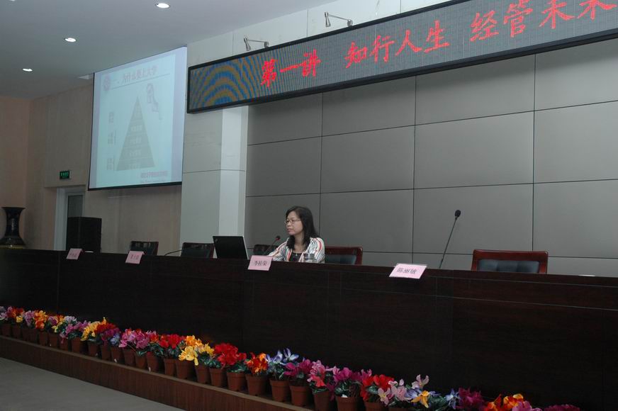 9月21日下午3:00,经济管理系在学院报告厅举行“经管大讲堂”开班第一讲。本期大讲堂由经济管理系李桂荣教授主讲,主题为“知行人生经管未来”,全体2012级新生参加了本期大讲堂活动。