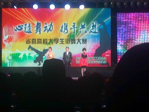 2011年4月26日晚,为纪念建党九十周年和“五四”运动九十二周年,由省直团工委举办的“心随舞动,携手共进”省直高校大学生街舞比赛在石家庄工商职业学院举行。本次街舞大赛共25支代表队参加,吸引了省直高校众多街舞爱好者。我院“糖糖”街舞社代表学院参加了此次比赛并获得了优秀奖的好成绩。