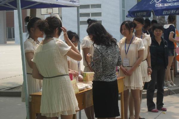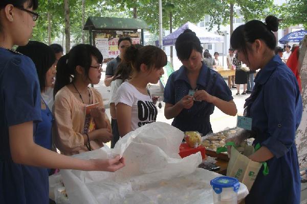 《食品营销课程》实战——真知源系列产品热卖活动于2011年5月25日在教学楼东侧举行。七个团队都非常重视这次销售实战,在认领任务后,各个团队都精心策划,周密部署,合理分工,团队之间既有竞争又有合作。每个团队在团队形象、卖场布置、气氛渲染等方面都狠下功夫。11时,销售活动正式开始,销售现场热闹非凡,各个团队竭尽所能,充分发挥自己的优势,介绍产品特色。运用“有买有赠”、“满元抽奖”等促销手段,使顾客产生购买欲望。各个团队众志成城、齐心协力,基本完成了预期的销售目标。在销售现场,教务处王处长、基础部董主任、社工系安主任等作为评委,扮作顾客从团队形象、卖场气氛布置、销售技巧方面,对销售团队进行了量化考核。