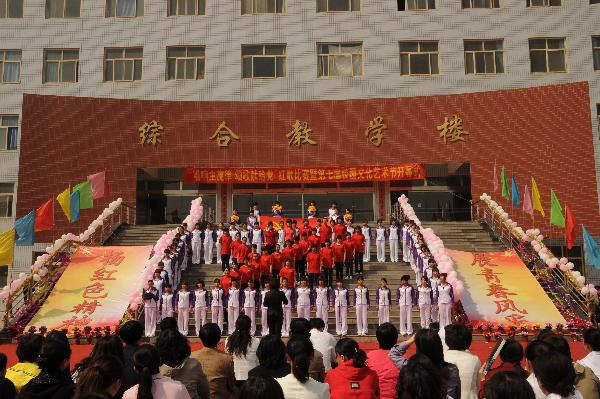 为隆重庆祝中国共产党建党90周年,歌颂党的丰功伟绩,赞美社会主义建设的伟大成就,抒发我院广大师生爱党爱国的高尚情怀,进一步推进我院文明校园创建活动的深入开展,2011年4月19日下午,学院团委隆重举办“唱响主旋律颂歌献给党”红歌比赛暨第七届校园文化艺术节开幕式。六支学生参赛队和三支教工表演队参加了本次比赛。3000余名师生观众观看了比赛。学院党委书记王静同志、院长王振杰同志、副院长柳韶军同志出席了本次活动。