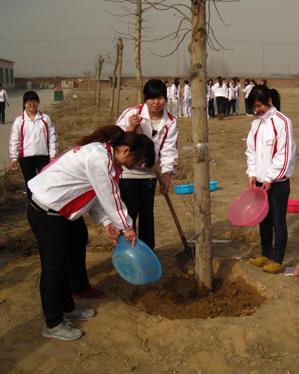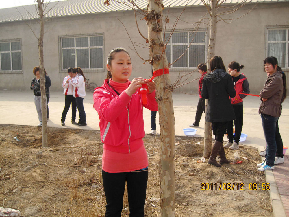 上午8:30,我系300多名青年志愿者集合完毕,学生会主席兰虹向大家说明本次活动的要求。之后,大家分别拿着水盆和桶向南院进发。由于水源较少,同学们采取分工合作的方式,有的同学排成长队负责传水,有的同学专门负责浇水。尽管天气有点热,但是大家干的很起劲,一个半小时以后,南院沿甬道两边的树木全部浇灌完毕。 浇完树后,同学们分别拿出早已写满心愿的红丝带系在小树上,祝福小树茁壮成长,祝福校园越来越美。