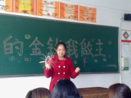 2010年11月30日,09级会计电算化四班在教学楼502举办了“我的金钱我做主”主题团日活动,应用技术系团总支副书记郑海英、组织部部长郝泽贤、副部长高霞霞等学生干部应约参加了观摩。本次团日活动通过号召同学们用最少的钱购置自己觉得最有利用价值的东西加上一些废品,然后亲手设计并制作出自己本小组的纪念物品,然后让大家培养勤俭节约的好品质。此次活动按宿舍分组,每六个人一组,每组分发两元钱,利用课余时间去购买自己本组觉得最具利用价值的东西,并准备好本组需要用的废品,在团日活动的时间制作出自己的作品。