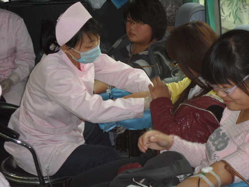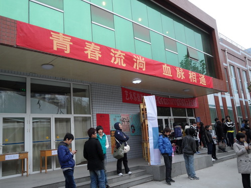 2010年10月26日,我院以“青春涌动 血脉相连”为主题的义务献血活动在学院图书馆门前举行,2010级新生积极参加本次义务献血活动。