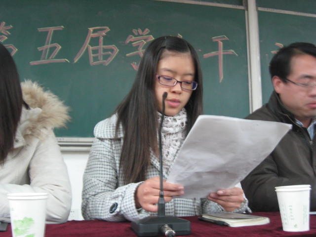 大会上,原团总支副书记郝玉燕同学与原学生会主席康玉婷同学首先做总结发言。他们分别总结了第四届团总支学生会各部的工作,并感谢在工作中给予栽培和帮助的领导老师及相互协作的全体成员,预祝第五届学生会能取得更多成就。新上任的团总支副书记郑海英同学与学生会主席杜宇同学向大家畅谈了她们进入团总支学生会的感触,指出一个成功的团体需要每个人的努力,团总支学生会应以服务同学为宗旨,工作中还应具备创新意识。