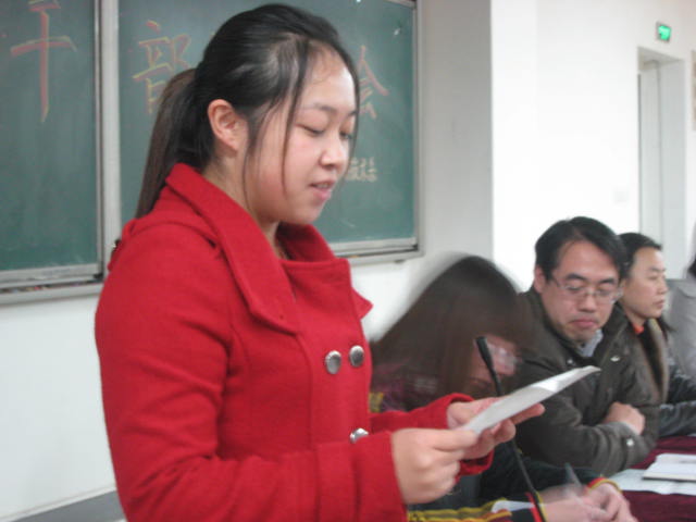 团总支书记黄士良老师对上届团总支学生会的总体工作做了汇报,肯定了第四届学生管理团队的工作成绩。对上届学生会的工作很满意,特别是在日常管理工作中他们发挥了重要作用,感谢他们所做的工作。黄士良老师还对新一届学生会的成立表示祝贺,希望新一届学生会成员们竖立起责任、服务意识,创新、精品意识,大局、奉献意识,并尽快进入角色,完成交接工作,制定完整的工作计划,力争做一支系里放心,学生满意的自律团队。