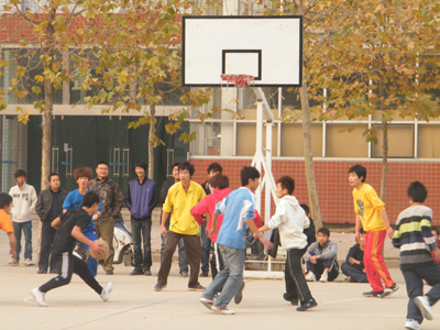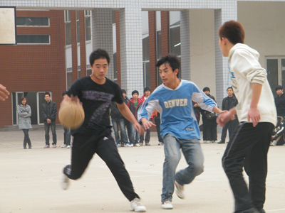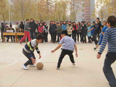 篮球场上人声鼎沸,充满了一幕幕灵动又富有激情的画面,一次次扣人心弦的投篮,一声声激动的呐喊,一个个胜利的微笑,一阵阵鼓舞斗志的掌声,将比赛不断推向高潮。上半场比赛,艺术系以24:12打赢应用技术系,双方互换场地.下半场比赛开始,双方很快进入最佳状态,队员们每次进攻都更加竭尽全力,在篮球场上,充分展示了自我,真正体现了女院男生应有的气概。经过激烈的斗争,最后艺术系以49:44的优势,战胜了应用技术系。