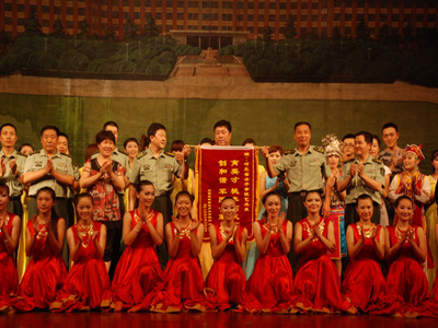 10月18日我音乐表演师生在系主任董海鹰和胡芳教研室主任带领下来到石家庄市27军演出。晚上7点,我院与部队共同举办了“十月欢歌,军民联欢”。我院董海鹰主任和部队1000余名官兵、500余名居民共同观看演出。演出受到了部队官兵的高度评价和热烈欢迎。
