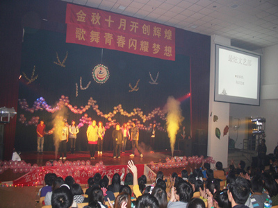 2010年9月29日晚,我院与河北省劳动关系学院在关系学院报告厅共同举办了以“金秋十月开创辉煌歌舞青春闪耀梦想”为主题的2010年庆国庆文艺汇演。两院领导、老师以及各系同学们欢聚一堂,共同观看精彩的节目。