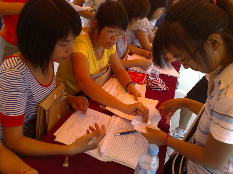 各专业分别开设为新生办理入学手续的服务台,每个班级的辅导员助理焦急的等待着自己所带班级新生的到来。负责接待的团总支学生会的志愿者们热情地欢迎新生们的到来,他们精心布置了迎新会场,耐心地指导新生们办理报到入学的各种手续:填写确认信息,收交通知书,讲解注意事项。团学博览编辑部的同学们还专门开设了新生咨询台,热情地为新生和家长指路、疏导。志愿者们还积极主动的帮助新生及家长提行李,带领新生到宿舍报到,使新生报到工作有序开展。师兄师姐们亲切的笑容,温柔的话语,认真的引路,像一股暖流温暖着新生们的心。