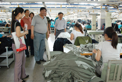 艺术系领导赴际华三五零二慰问服装专业参加生产实践课程学生