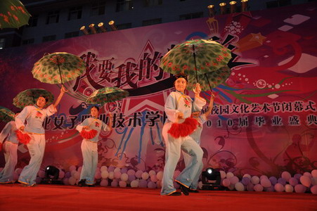 6月15日晚,我院教学楼前广场灯光闪烁、彩球高挂、礼花缤纷。学院第六届校园文化艺术节闭幕式暨“我要我的精彩”2010届毕业盛典活动在学院广场隆重举行。学院党委书记王静同志、院长王振杰同志、副院长柳韶军同志及全校教职工、5000余名在校生和毕业生共同观看了演出。