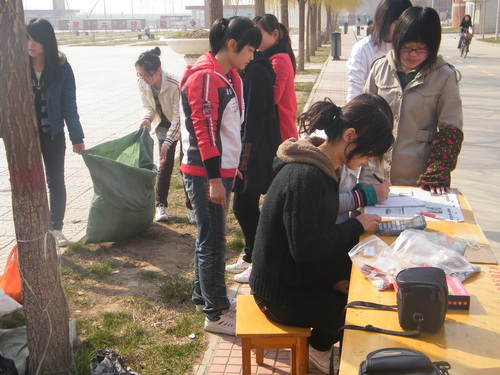 为积极配合学院“低碳校园行”活动,倡导绿色生活方式,2010年3月28日上午,院学生会在小广场举办了“绿色工程”废品回收。此次活动由生活部主办,秘书处和外联部协助。