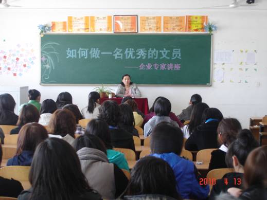 根据近年就业情况及专业实际,为使文秘、法律专业学生更好的了解办公室文秘工作的状况、加强岗位认识,明确文秘相关岗位对人才在素质、能力等方面的要求,从而使学生能充分规划在校期间的学习生活,更好地面对专业挑战,4月13日下午,法律文秘教研室邀请石焦集团办公室主任张文静女士作了以“如何做好办公室工作、当一名优秀的助手”为主题的专题讲座。讲座在教学楼413教室举行,法律文秘教研室部分教师及08、09级学生参加了本次讲座。