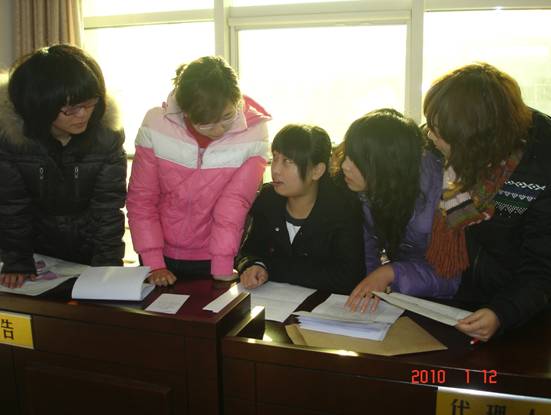 为积极推动法律实践教学活动的开展,理论联系实际,提高学生的知识应用能力,08法律事务专业学生在学习民事法律知识的基础上,进行了为期两周的民事模拟法庭实训。通过庭审教学片的观看、真实案件的分析、模拟法庭剧本修订、法庭审理、案件材料的制作、案卷的整理装订等环节的实训,同学们的专业知识得到了巩固,对民事诉讼程序更为了解,案件的分析能力进一步增强,运用专业知识解决实际问题的能力也得到了提高。