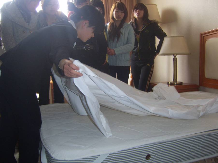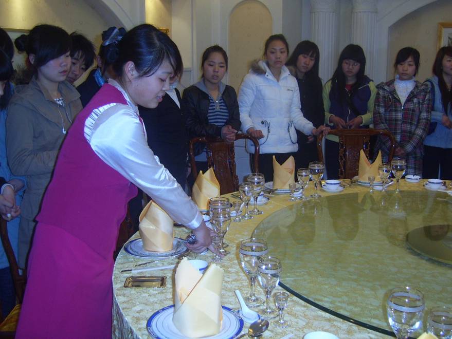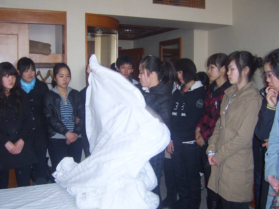 为了加强学生理论联系实践,把校内的学习和实际的工作结合起来,在学中做,在做中学,同学们在酒店分别参观了客房、餐饮、前厅等部门,还参观了河北会堂。期间,老师现场讲解,学生现场进行学习,还请到了企业的技术能手对学生们进行现场培训,学生们亲自动手进行实际操作。