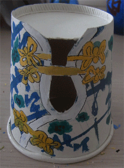 为增加学生对《装饰图案》课程的兴趣,提高学生的动手能力与空间想象力,增强本课程与后续课程的连贯性,薛颖老师在09级装潢艺术设计专业《装饰图案》课程中加入了实体空间中图案的训练——在纸杯上设计并绘制图案,充分调动了学生的学习积极性与主动性,学生的想象力得到了充分的发挥,取得了良好的教学效果。