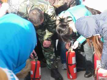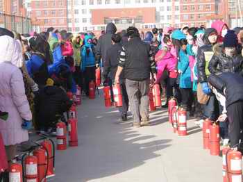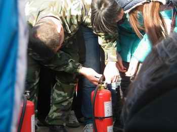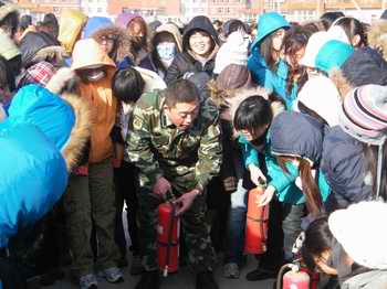 在本次演习中,首先由邀请来的消防队员为全体参演师生讲解了消防常识、消防器的使用等知识,并对如何消防进行了一系列的示范演练,包括消防现场的模拟、安全疏散的基本要求等等,然后由大家进行演练,整个演习持续了大约两个小时,模拟过程井井有条。