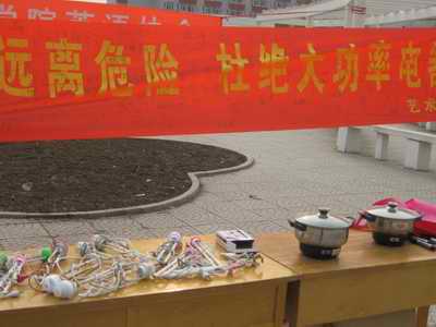 石家庄的冬季十分寒冷,学生的用水又成了这个季节学校的头等大事,学生们采取了各种各样的方式满足自己的生活需求,于是学生宿舍里,又出现了热得快、电饭锅等大功率电器的身影。上海某高校女生因在寝室使用大功率用电器引起火灾的悲剧,让我们明显感觉到使用大功率用电器的危害。我们自己不仅要杜绝大功率用电器,更加应该向全校同学积极宣传。学生宿舍内发生火灾的主要原因就是同学们在宿舍内违反规定使用大功率电器,如热得快、电磁炉、电吹风等,使用电热器具后忘记拔掉插头或关闭电源便离开房间,使电热器具无人监控,长时间通电发热引起火灾。11月是学校的消防安全教育月,学校采取多种方式对大学生进行宣传教育,特别是在学生宿舍安全问题上,后勤处更是“重拳出击”。多次对学生宿舍进行突击检查,对大功率电器,一经发现立刻收缴。