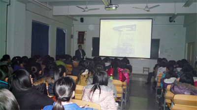 2009年12月11日,为了提高学生的设计水平,了解优秀设计师的设计思路和理念,装潢艺术设计专业邀请北京元洲装饰有限公司石家庄分公司的设计部经理周卫东先生到我系讲座。