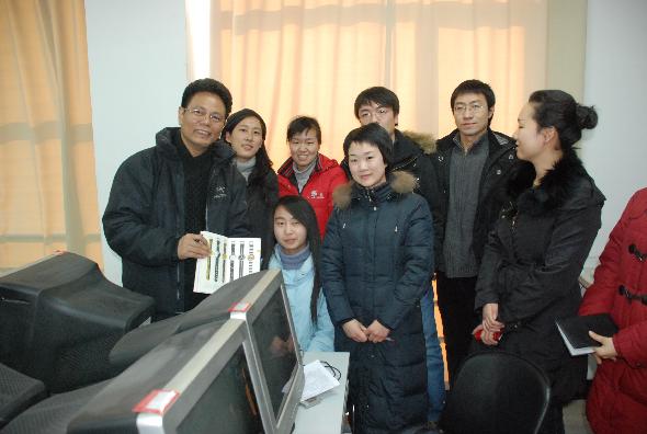 随后,在王静书记和艺术系李彦琴主任的陪同下,林教授参观了艺术系室内装潢、电脑设计、环境艺术设计等专业实训室,并对正在设计的同学做现场指导。在摄影实训室里,林教授与艺术系老师共同探讨教学管理、课堂设计、专业规划等问题,并对项目化教学进行了深刻分析。