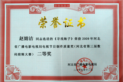 2009年12月4日下午2:30分,河北省第三届数码剪辑大赛颁奖晚会,在河北电视台第一演播室隆重举行。艺术系摄影摄像专业07级学生赵婧洁摄制的纪录片《寻找海子》荣获生活类二等奖。摄影专业负责人冯黄伟与获奖学生参加了颁奖晚会活动节目的录制。根据河北省第三届数码剪辑大赛组委会安排,12月5日将在凯旋金悦大酒店举行数码剪辑研讨会。届时,摄影专业将派10名学生参加此次研讨活动,在此预祝研讨会圆满,并希望参会学生能够从中受益!
