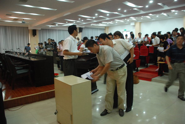 会后,与会代表就我院学习实践活动进行了群众满意度测评投票。