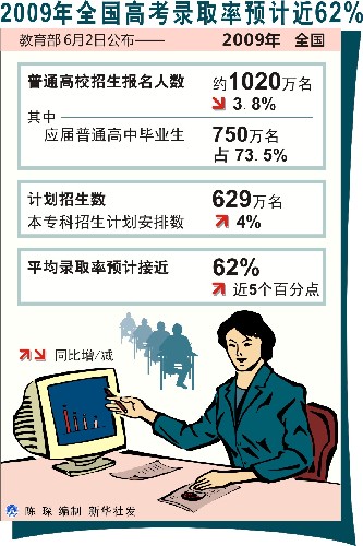 2009年全国高考录取率预计近62%